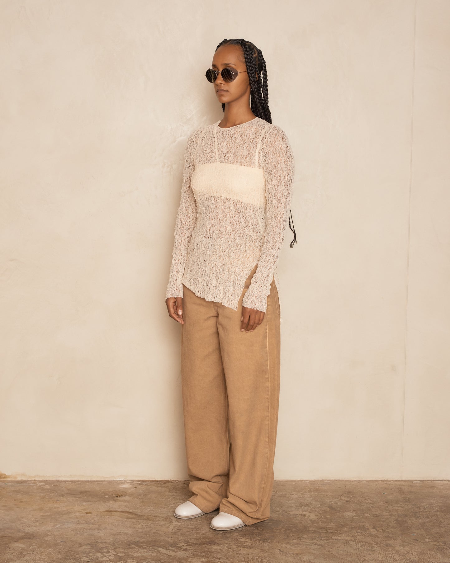 Pictured with Off White Lace Top by Uma Wang and Off White Nida Bra by Baserange.