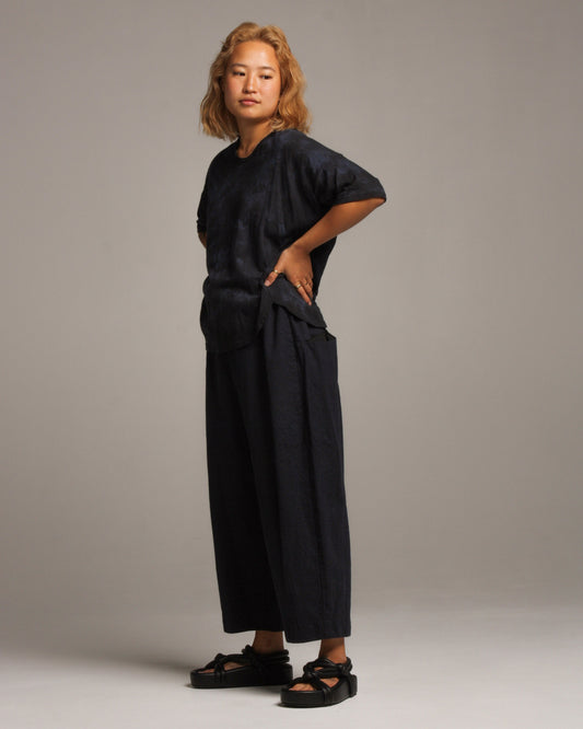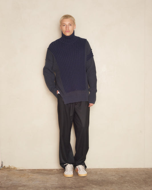 Sold outNavy Mix Fine Knit Pleats Trousers