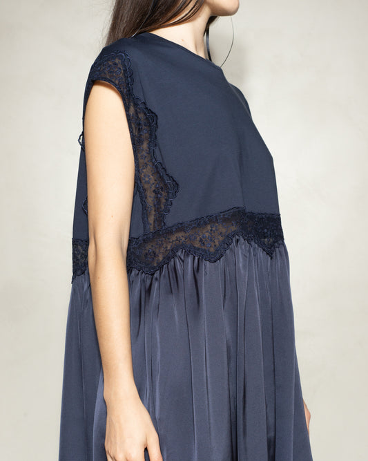 Navy Sleeveless Satin Patchwork T-Shirt Dress