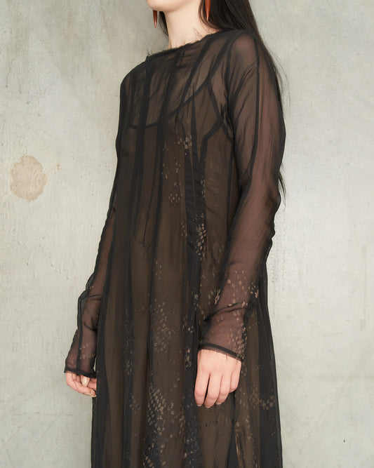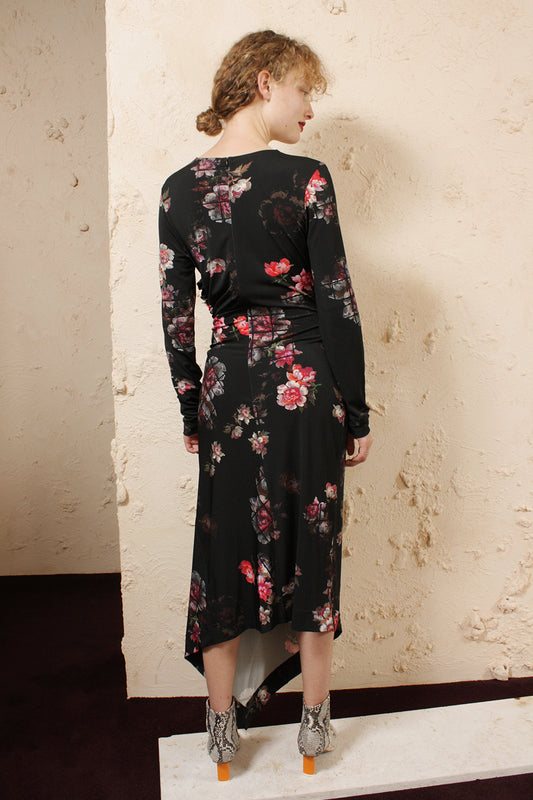 Noir Lace Print Long Sleeve Darted Dress