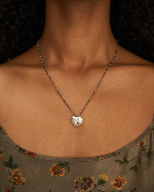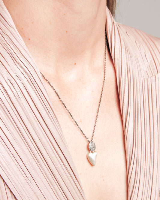 Pe Icy Grey Diamond Shine Heart Necklace