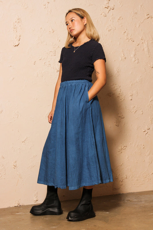 Sold outStitch Stripe Hand Dye Indigo Skirt