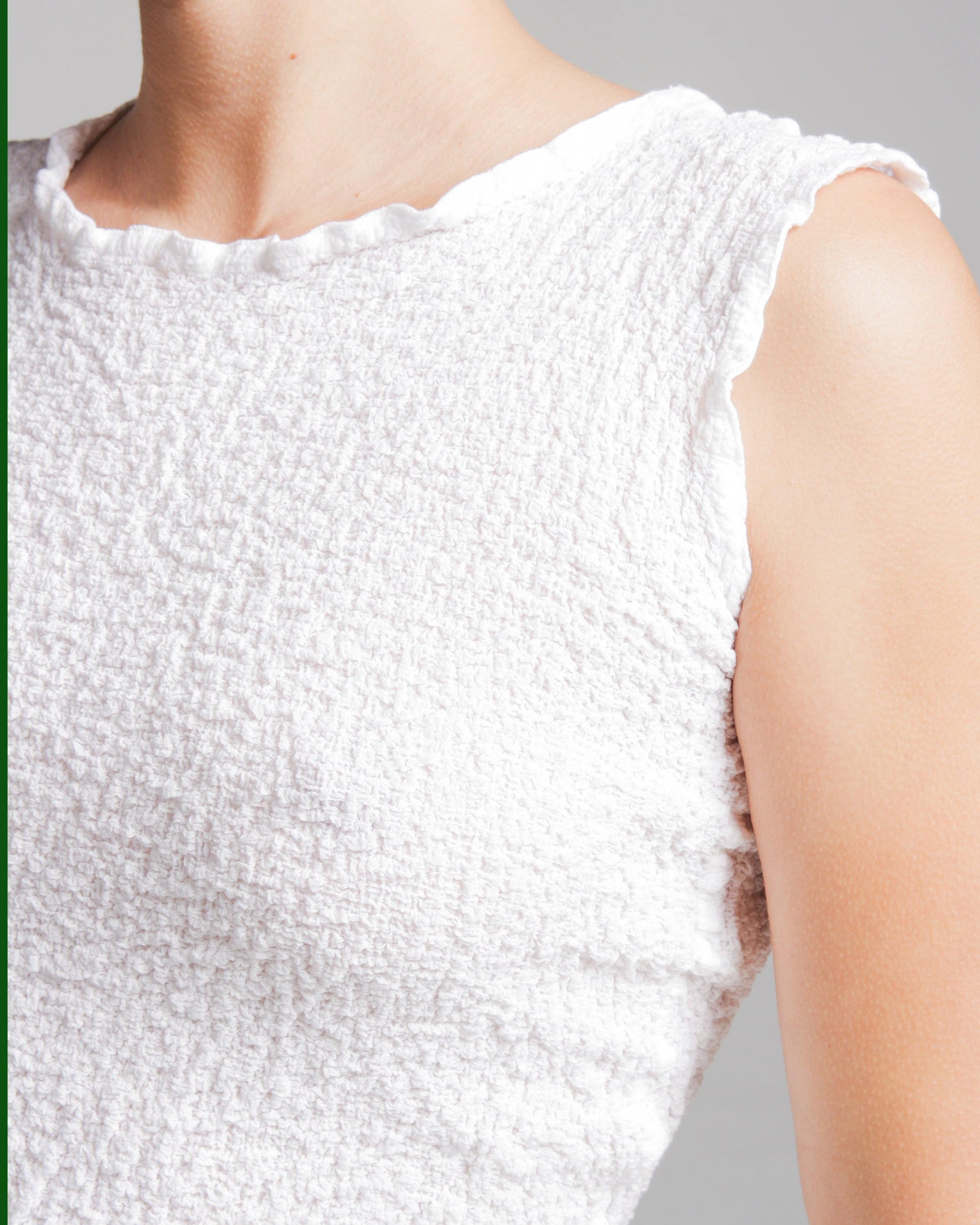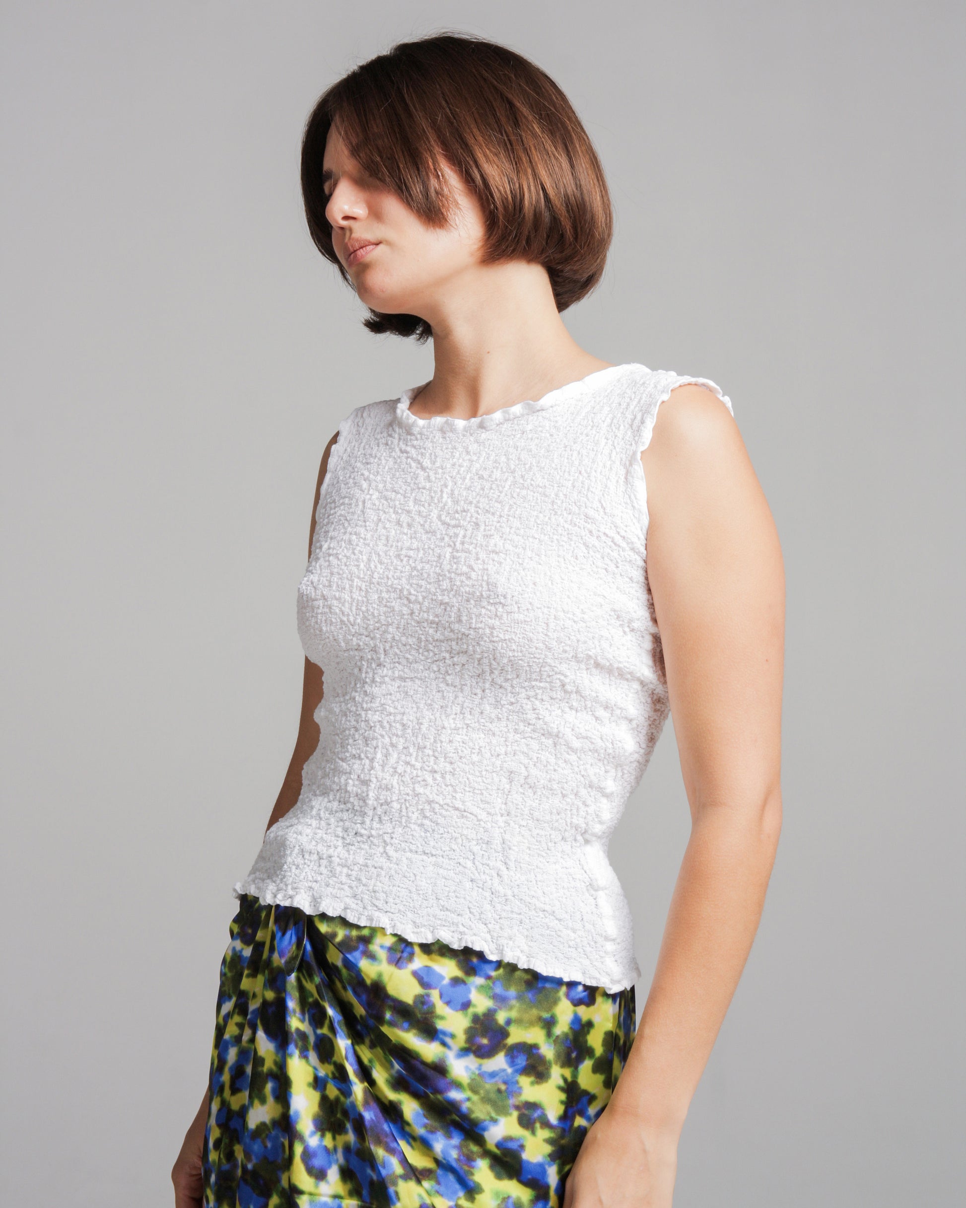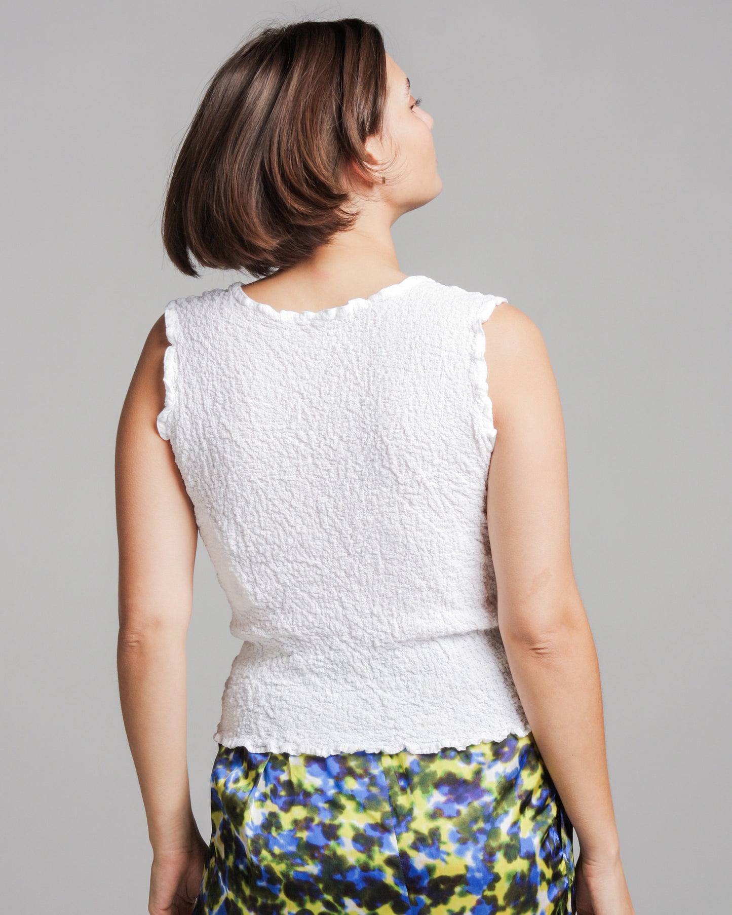 The cauliflower tank by Issey Miyake ME has returned! Crafted from 99% cotton, the cauliflower fabric is comfortable all year round and has a very satisfying texture.