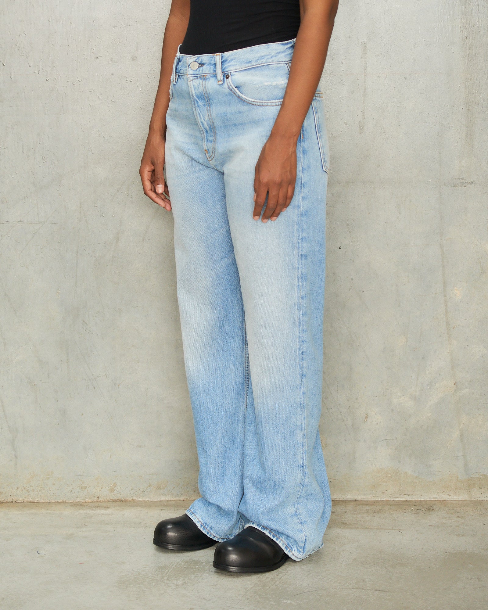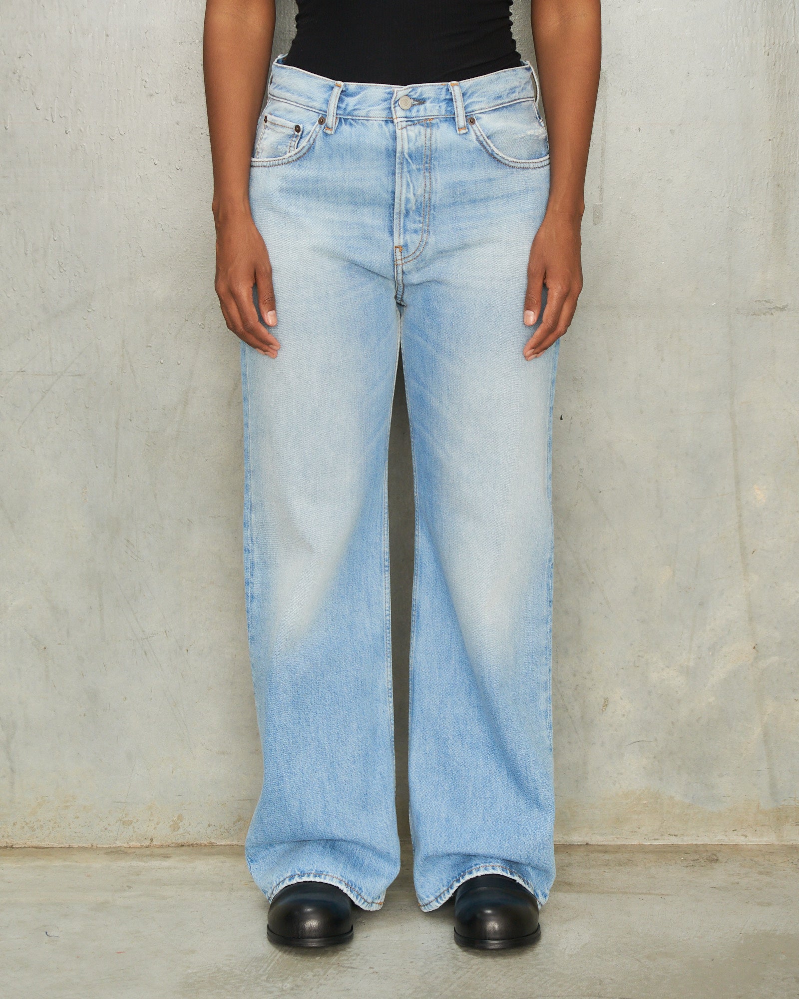2021F vintage jeans by Acne Studios in light blue. Organic cotton denim washed to a soft light blue for a vintage feel. Cut with a mid-rise waist and a gently flared leg for easy everyday wear.