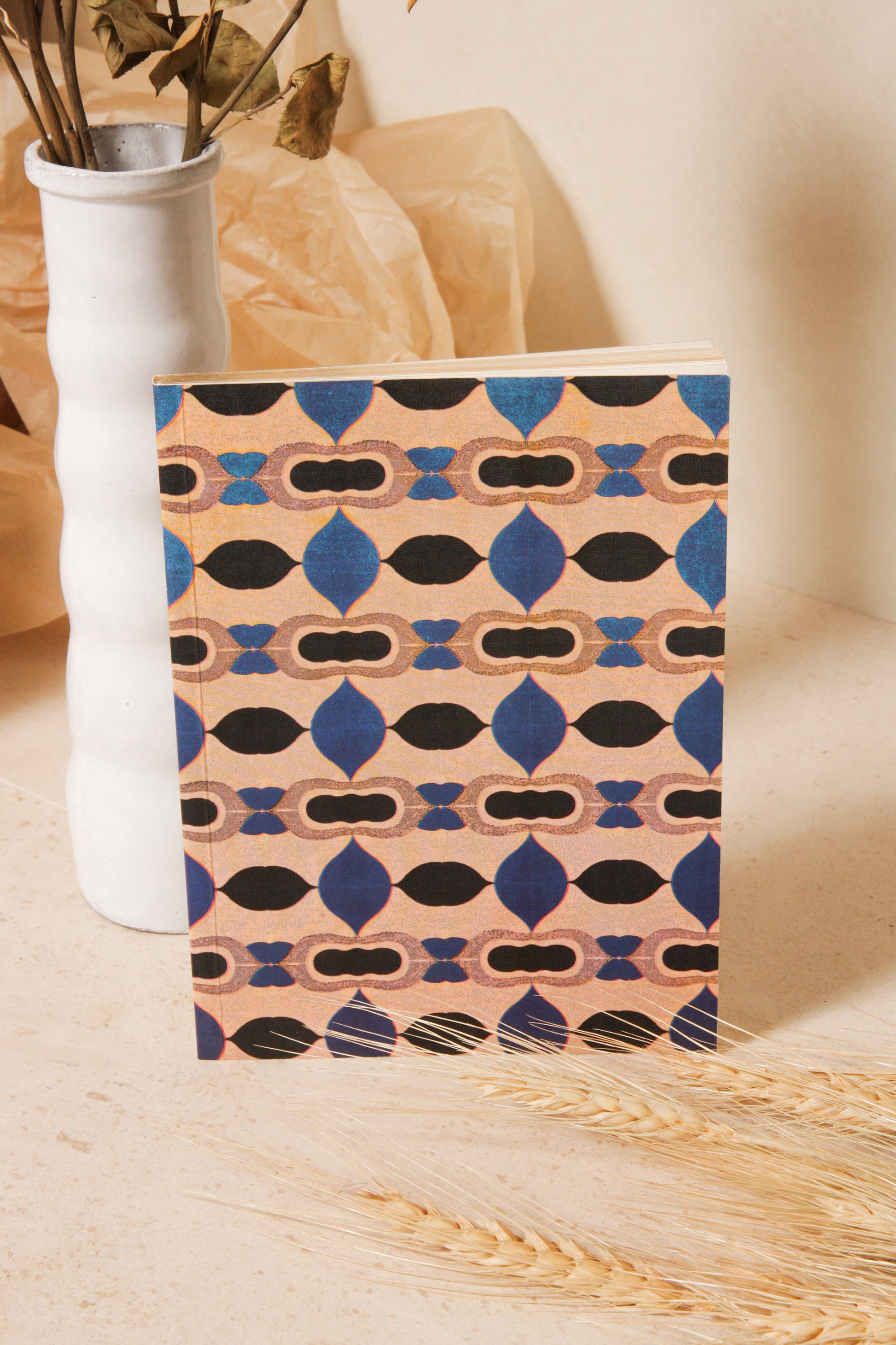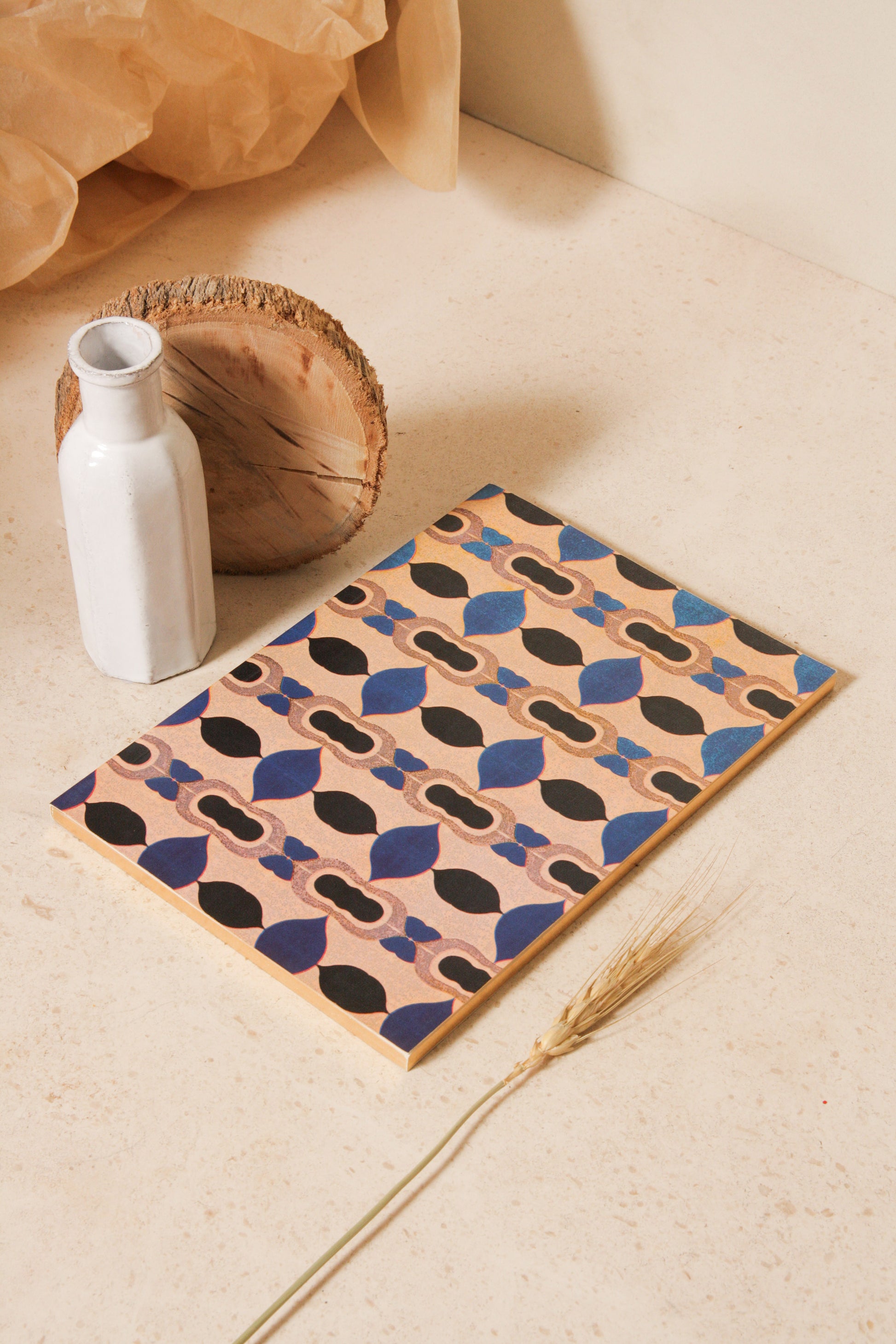 Blue Nathalie notebook by Astier de Villatte. This range of vibrant notebooks each display an optical and nostalgic tesselating pattern in bold primary colouring. The near-A5 size is perfect for on-the-go use, quick sketching and note-taking.