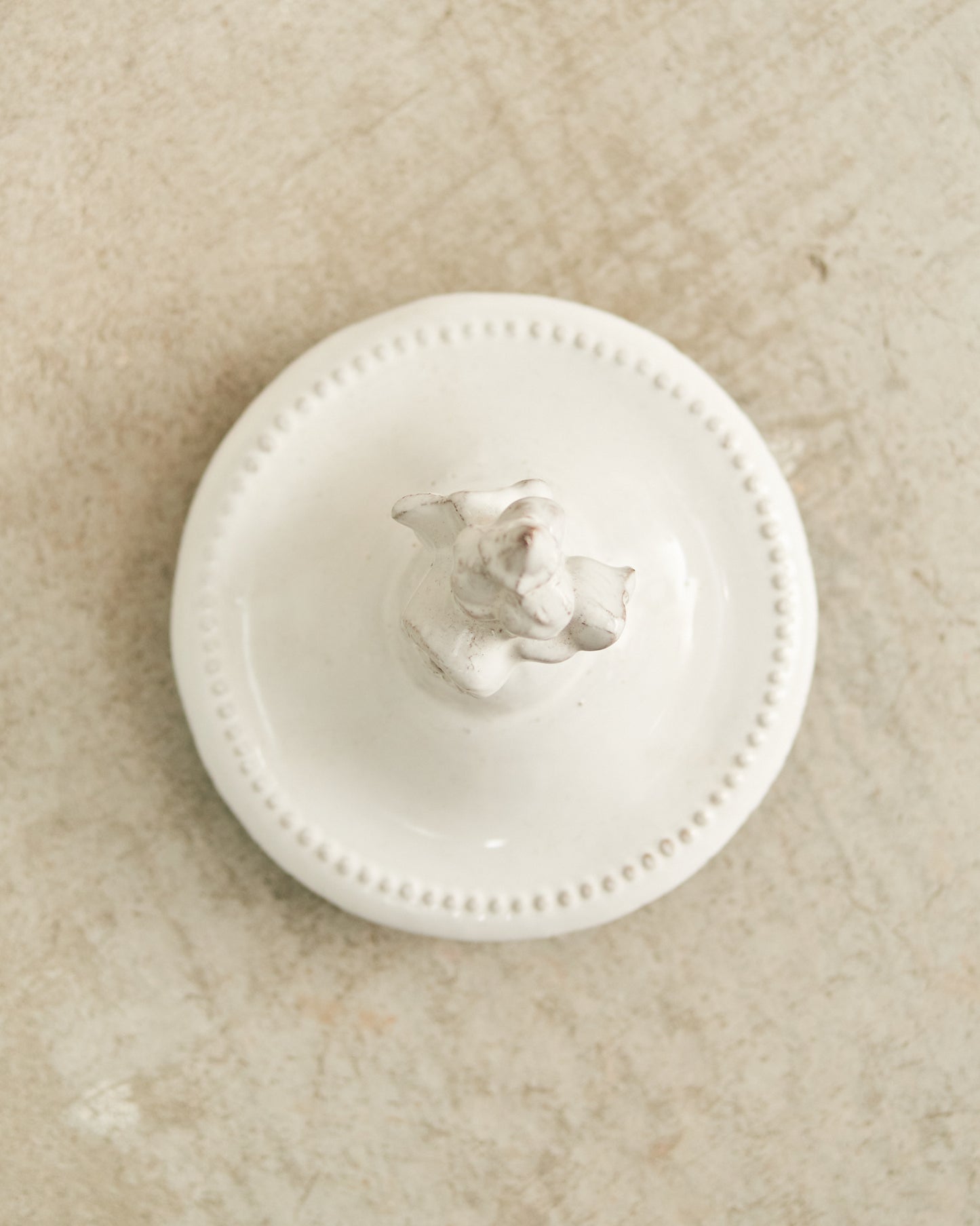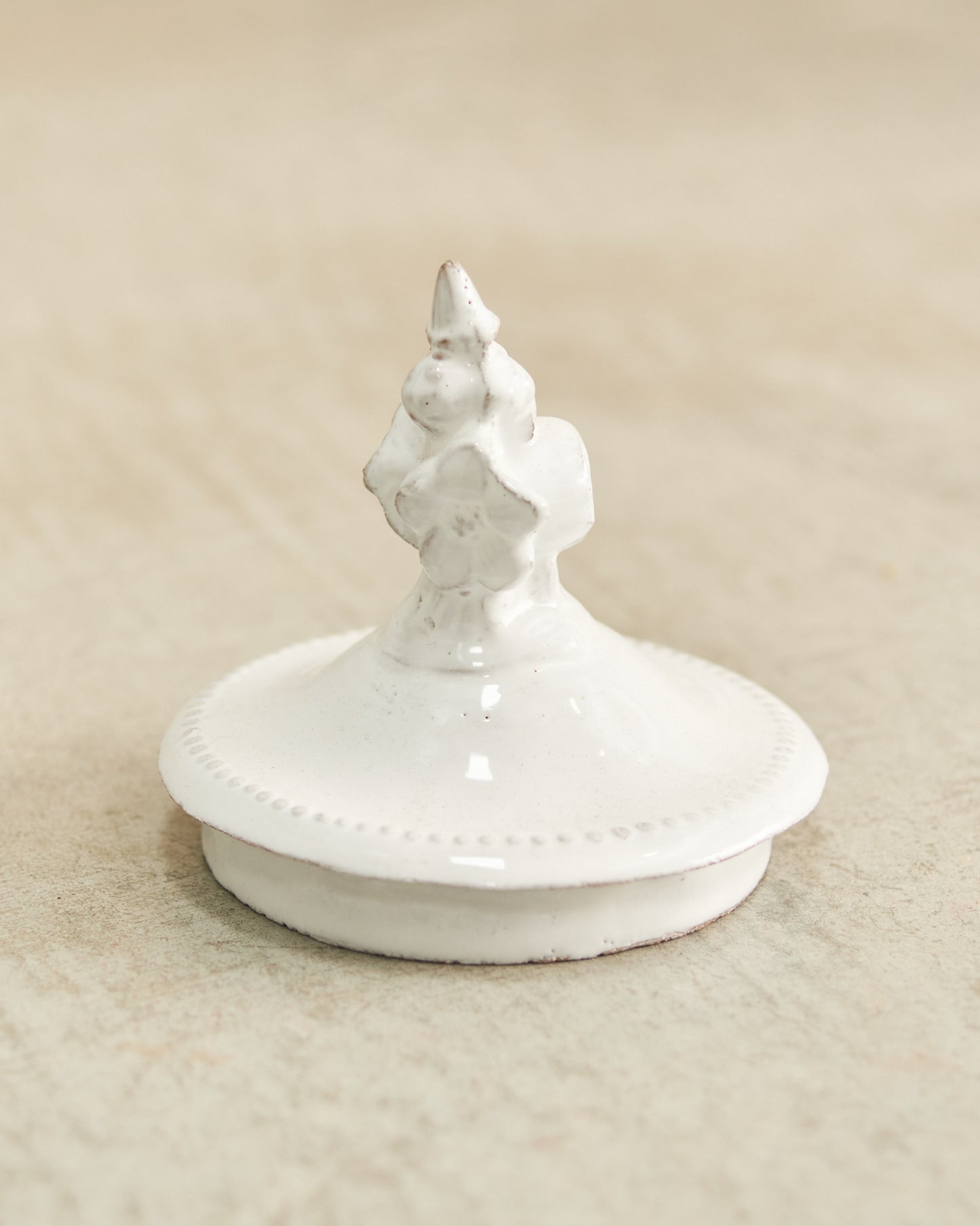 Ornate floral bouquet ceramic candle top by Astier de Villatte. Pair with your favourite Astier de Villatte candle to preserve the scent.