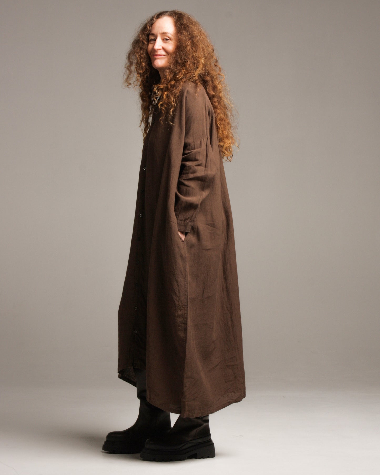 Brown Linen Shirt Dress