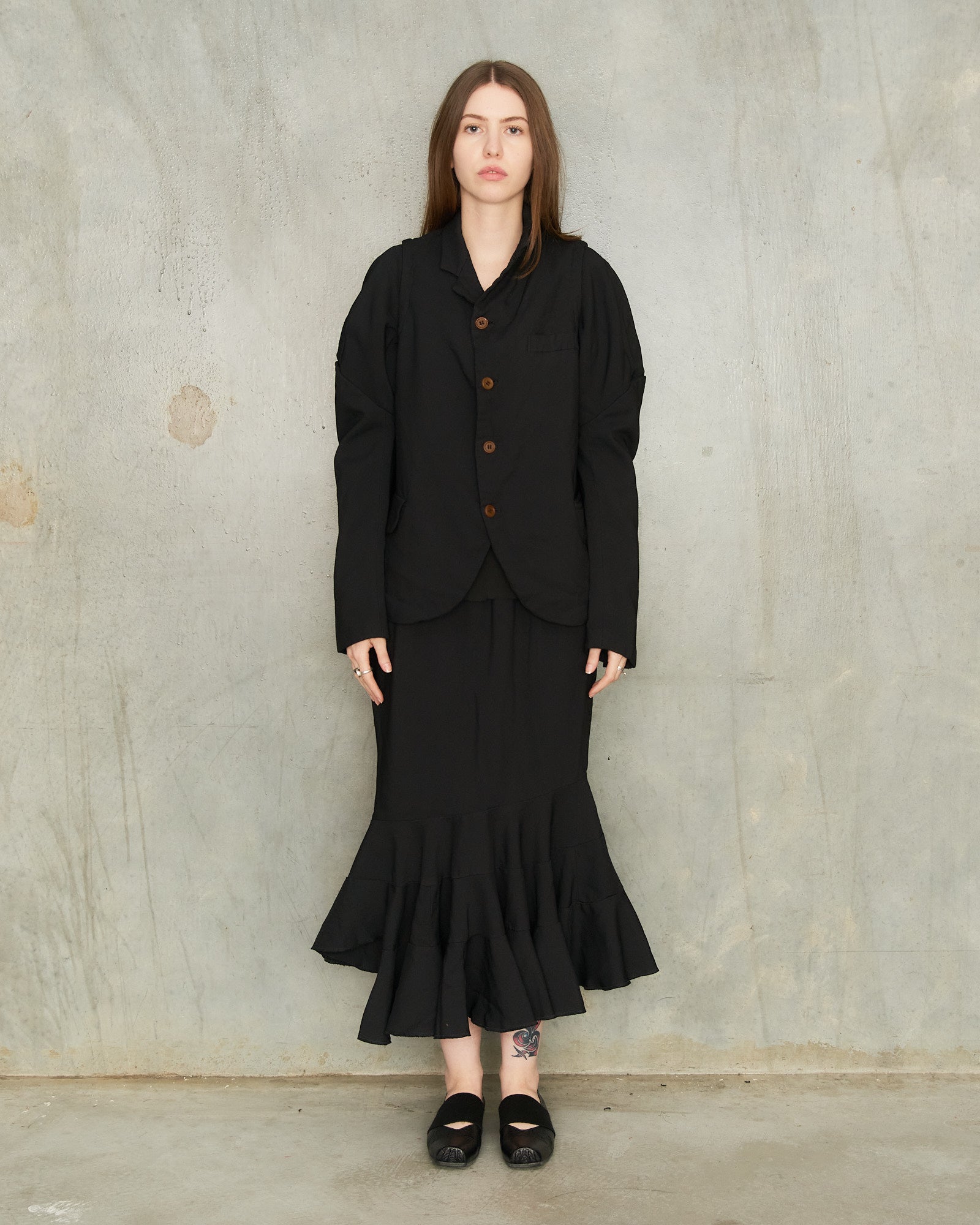 Pictured with Black Tailored Sleeve Jacket by Comme des Garçons and Black Strap Ballet Shoes by Uma Wang.