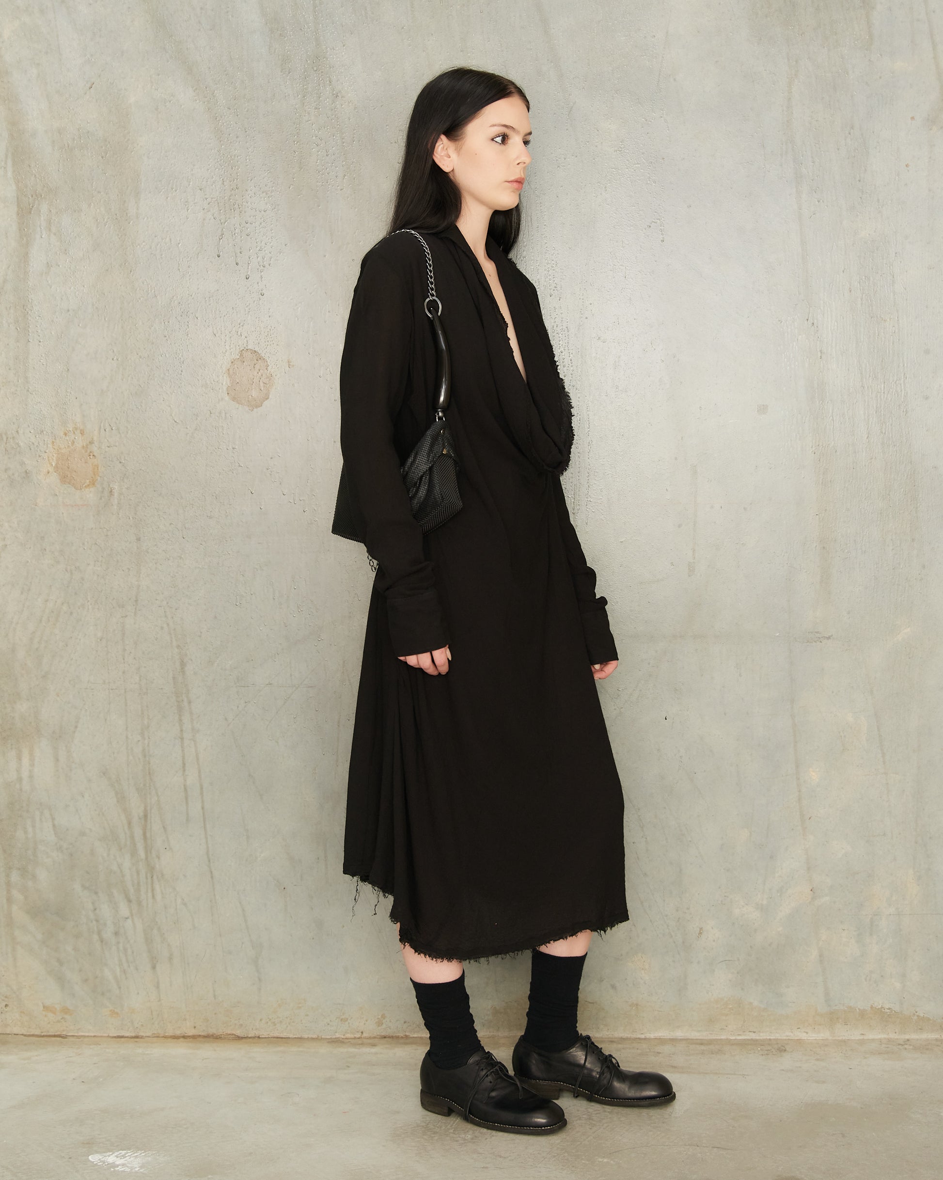 Patrizia pleated baguette bag by Laura B in matte black. Dazzling baguette style bag crafted from the brand's signature metal glomesh that elegantly unfurls into fine pleats. Accented with leather trim and adorned with a large polished horn, this bag exudes brilliance and defies expectation with its bold, luxurious design.