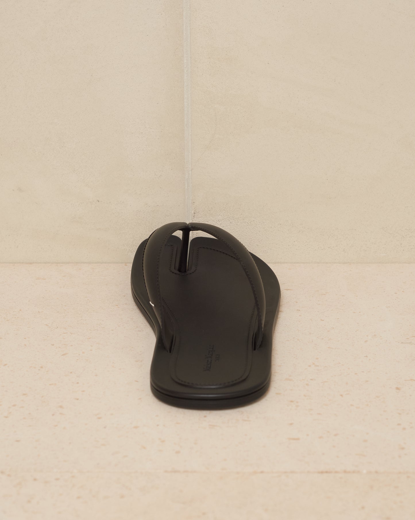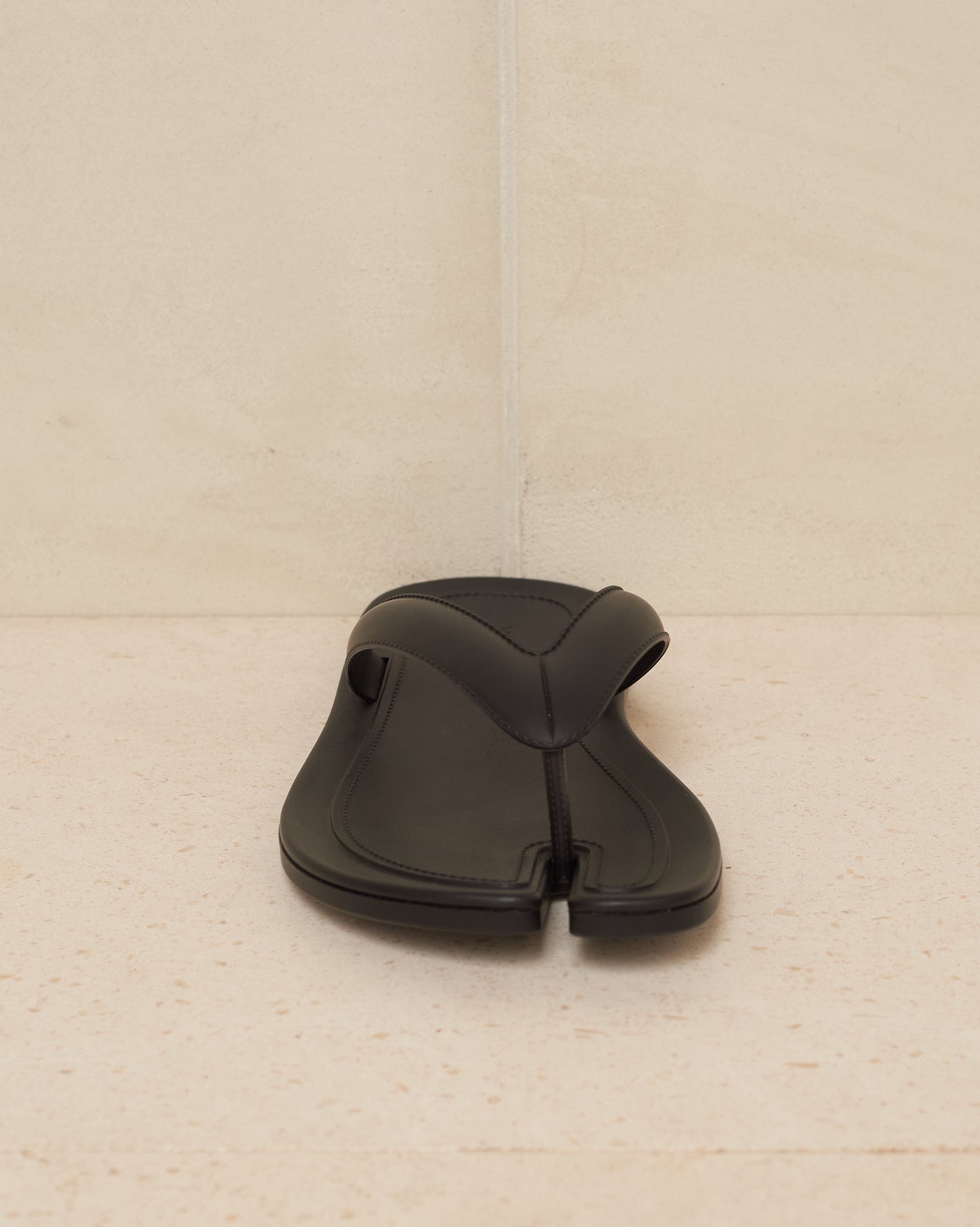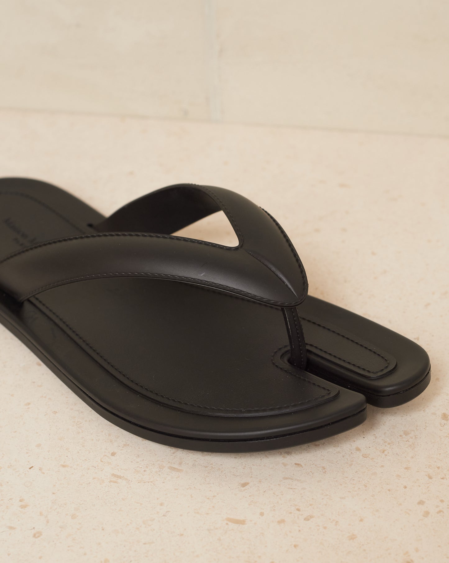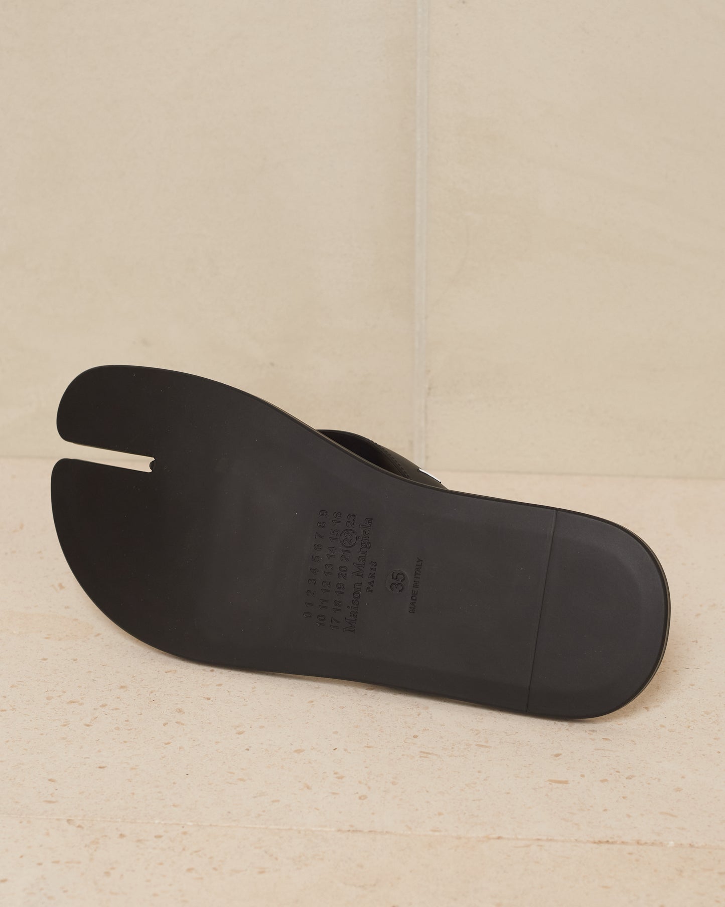 Tabi thongs by Maison Margiela in black. Elegant and minimal flip-flops crafted in durable polyurethane.