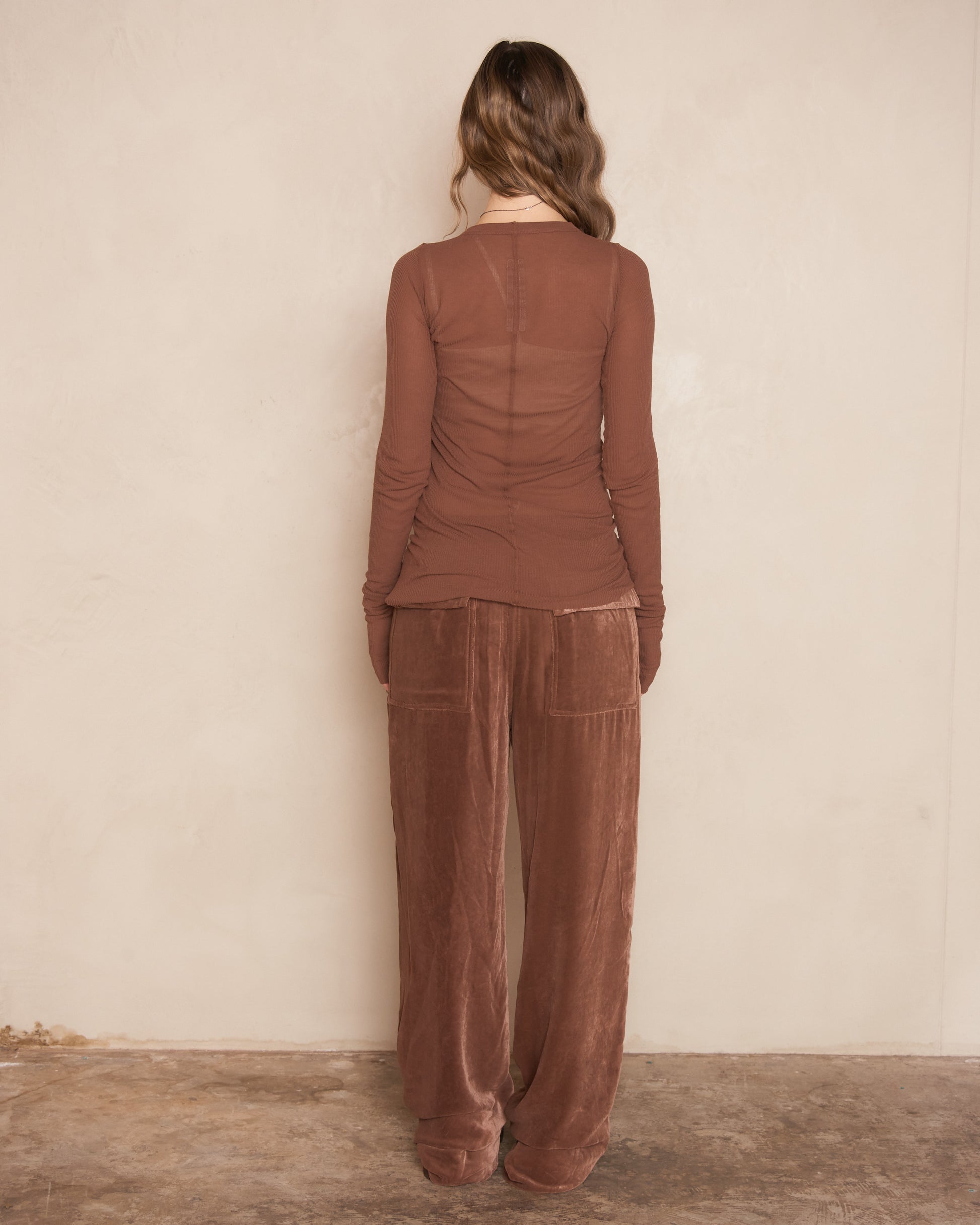 The Dietrich drawstring pants by Rick Owens in throat are draped-length trousers featuring an elastic waistband and elongated drawstring. Crafted from richly vivid velvet blended with silk, these elevated lounge-style trousers marry contemporary style with opulence. The design is completed with rear flap pockets, concealed buffalo horn buttons, and a luxurious fluidity.