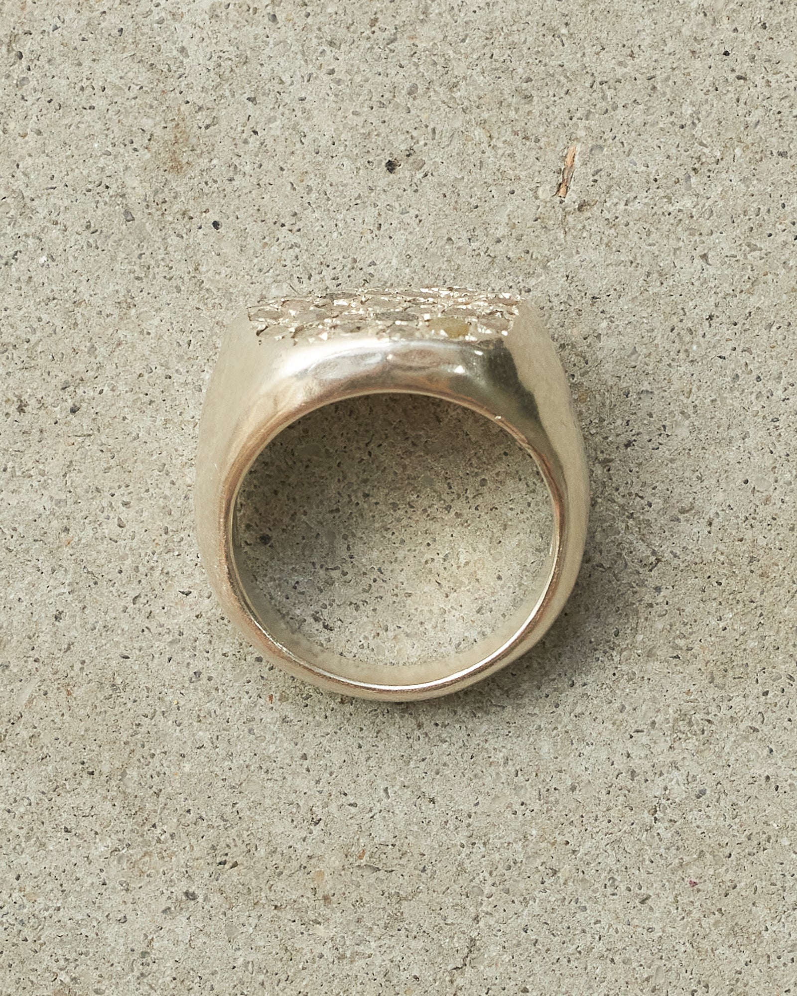 Aynur ring by Rosa Maria. A bold, rounded sterling silver band, encrusted with thirty-one dazzling icy grey diamonds for a striking, refined presence.