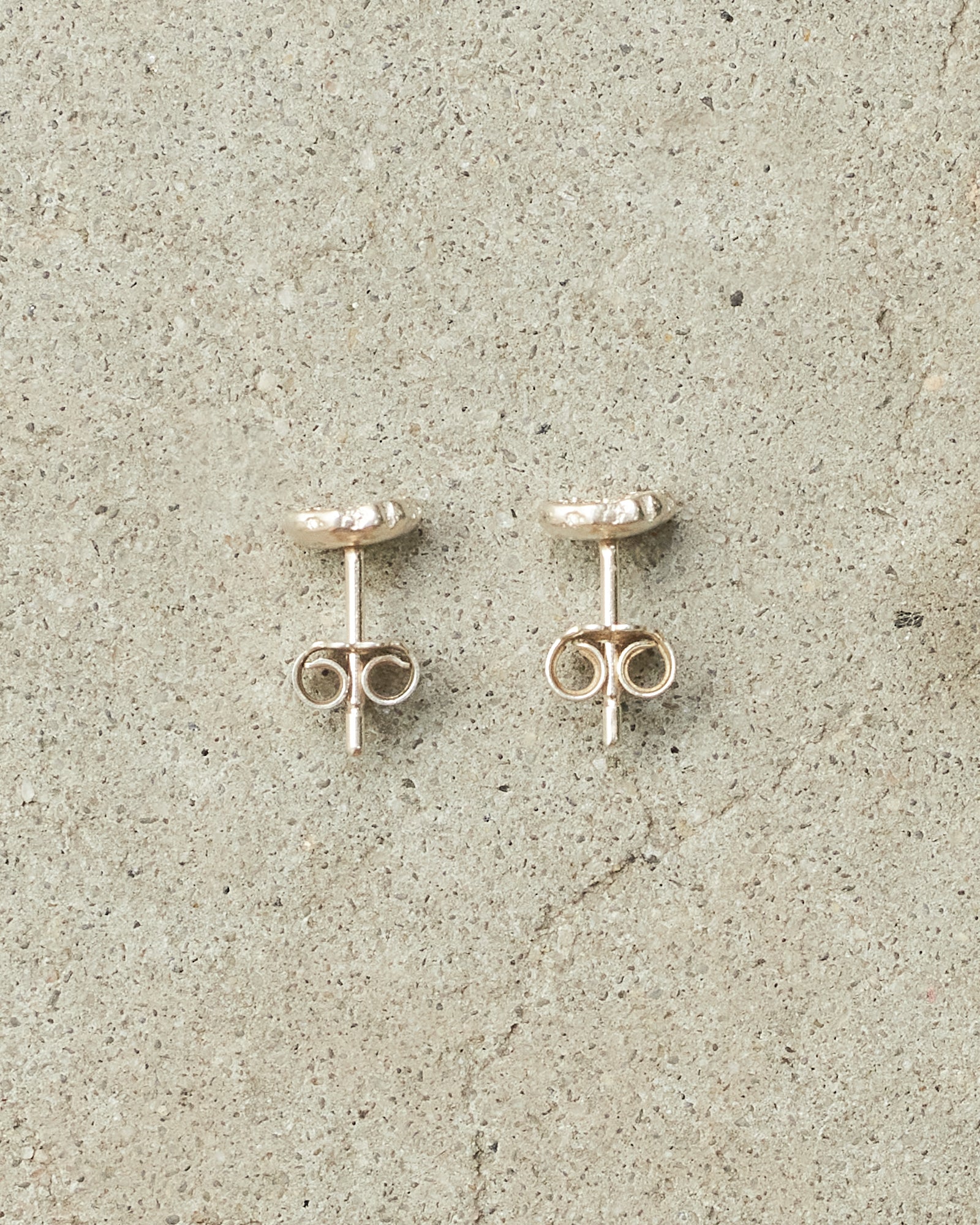 Bo Shargan earrings by Rosa Maria. Delicately brut sterling silver studs, each adorned with twenty-two sparkling cut diamonds. Small yet undeniably striking.