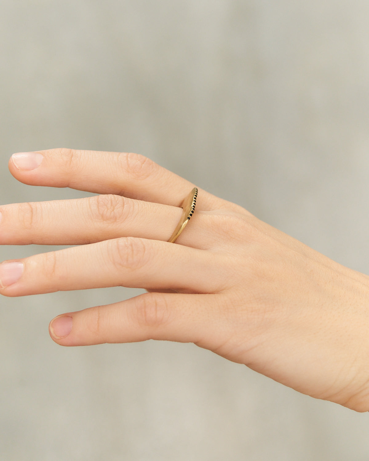 Milo copper band by Rosa Maria with black diamonds. A slender copper ring crowned by a raised ridge, meticulously set with fifteen black diamonds.
